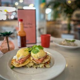 Went here on a whim for brunch Sunday. Really enjoyed the decor, staff, and the food of course. The wait was a bit long at 10am but that is to be expected for brunch. We sat at the bar and our waiter was very kind and prompt. My BLT was really good and I recommend adding the burrata. My only complaint was our waiter told us an extra mimosa was made and offered it to us, which we took and ended up getting charged for. He also told me I could get onion rings as a side with fries to which I agreed and then also charged me extra for that . We did not end up mentioning it to anyone but aside from that we had a great experience!